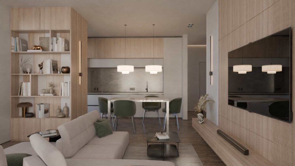 Built-in media walls are custom structures that house televisions, entertainment equipment, storage units, and decorative elements in a single wall installation. Unlike freestanding furniture, these installations are designed specifically for the room’s layout, allowing the structure to integrate perfectly with the surrounding interior.